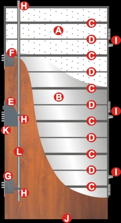 Konstrukcja: skrzydło o grubości 56 mm zbudowane jest z blachy stalowej grubości 0,7mm pokrytej laminatem PCV w kolorach drewnopodobnych