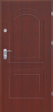 Ościeżnica wykonana jest z blachy stalowej grubości 1,5mm w kolorze skrzydła z możliwością wklejenia dodatkowego uszczelnienia zalecanego przy drzwiach zewnętrznych. W przypadku montażu drzwi na zewnątrz budynku zalecane jest (w kolorach ciemnych konieczne) stosowanie zadaszenia osłaniającego przed nadmiernym nasłonecznieniem i opadami atmosferycznymi. Ponadto w celu uzyskania klasy wodoszczelności 5B konieczne jest aby drzwi otwierały się na zewnątrz budynku. Drzwi standardowo występują w wersji gładkiej lub płytko tłoczonej Londyn. W opcji za dopłatą występują próg (z oferty producenta) z uszczelką oraz zapornica.