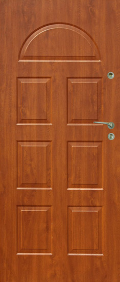 Skrzydło drzwiowe o grubości 45 mm wykonane jest z blachy ocynkowanej laminowanej w strukturze drewna lub lakierowane według palety RAL, wypełnione styropianem oraz wzmocnione specjalnymi kształtownikami.