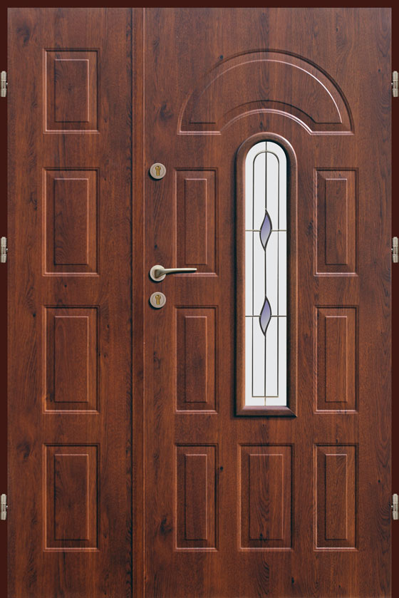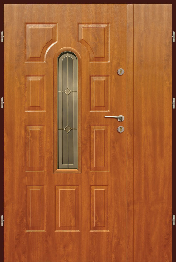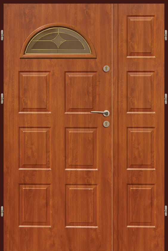 Produkowane w Polsce stalowe drzwi zewnętrzne dwuskrzydłowe doskonale prezentują się jako drzwi wejściowe w budownictwie jednorodzinnym.