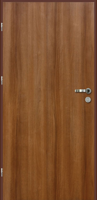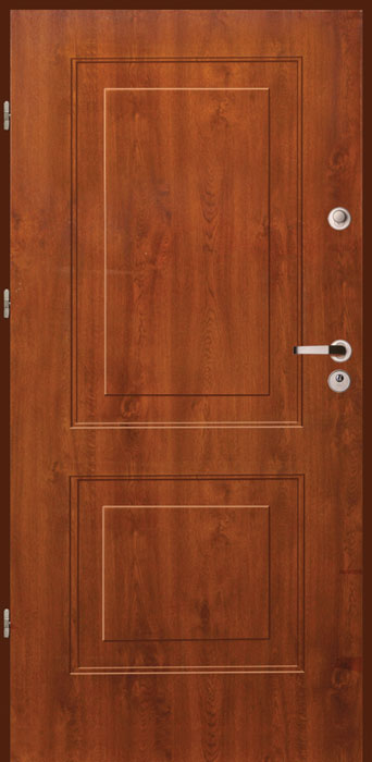 Skrzydło drzwiowe wykonane jest z blachy ocynkowanej laminowanej w strukturze drewna lub lakierowane według palety RAL, wypełnione wełną mineralną oraz wzmocnione specjalnymi kształtownikami.