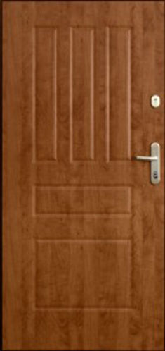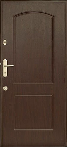 parametrów użytkowych tego produktu. Ozdobne panele pokrywające płat drzwiowy z obydwu stron zapewniają bardzo dobre parametry izolacji termicznej i akustycznej. Istnieje zawsze możliwość wymiany uszkodzonych paneli. Dwa atestowane w klasie C zamki, sztywny łańcuch oraz zbrojona stalowa konstrukcja wewnętrzna zapewniają wysoki stopień bezpieczeństwa.