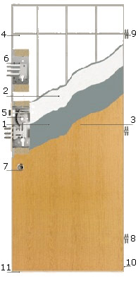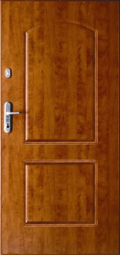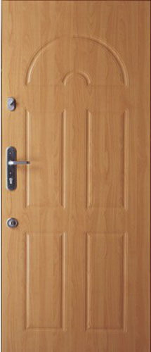 Zamek główny, wkładka zamka głównego oraz zamek dodatkowy są atestowane w klasie C, najwyższej klasie odporności na włamanie. Skrzydło drzwi jest wyposażone obustronnie w ozdobne panele laminowane folia w ciepłych kolorach naturalnego drewna, co podnosi walory estetyczne i izolacyjne drzwi. Konstrukcja skrzydła zapewnia możliwość wymiany paneli.